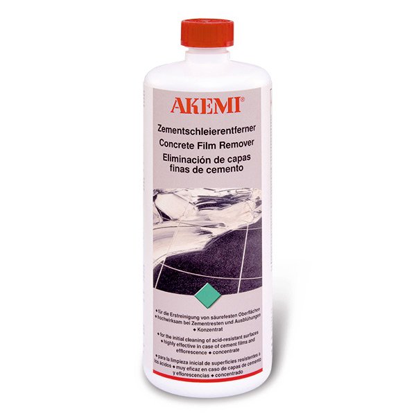 Zmywacz powłok cementowych AKEMI Zementschleierentferner jest środkiem czyszczącym na bazie kwasów nieorganicznych i inhibitorów korozji. Środek ten po zastosowaniu jest biologicznie odnawialny.
